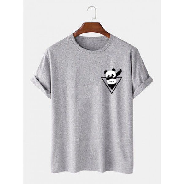 Mens 100% Cotton Cartoon Panda Print Short Sleeve T-Shirts