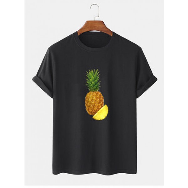 Mens 100% Cotton Pineapple Print Crew Neck Short Sleeve T-Shirts